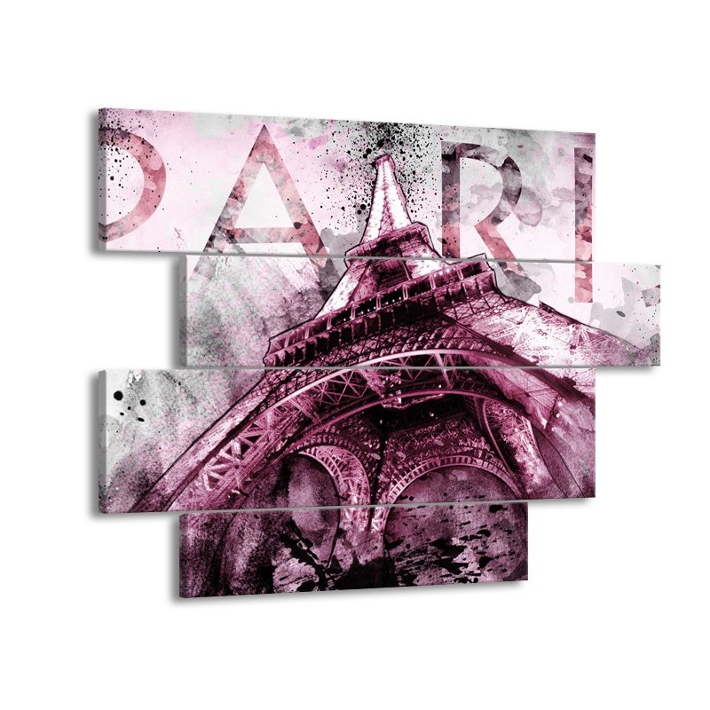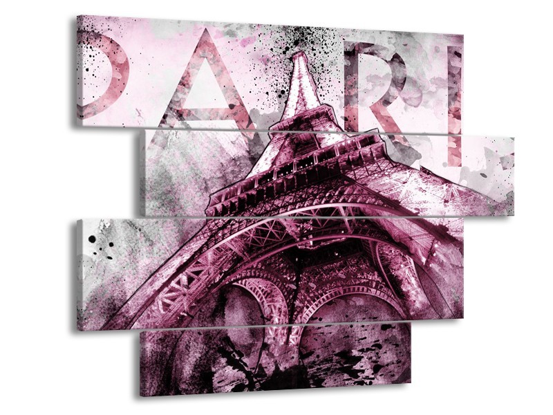 Glasschilderij Parijs, Eiffeltoren | Paars, Roze, Grijs | 115x85cm 4Luik