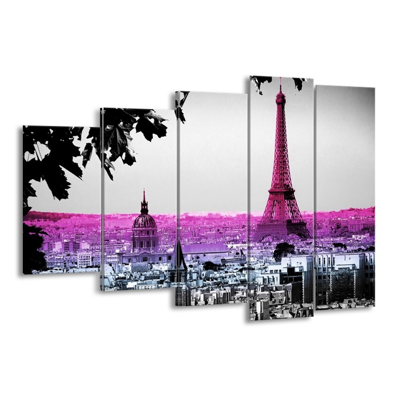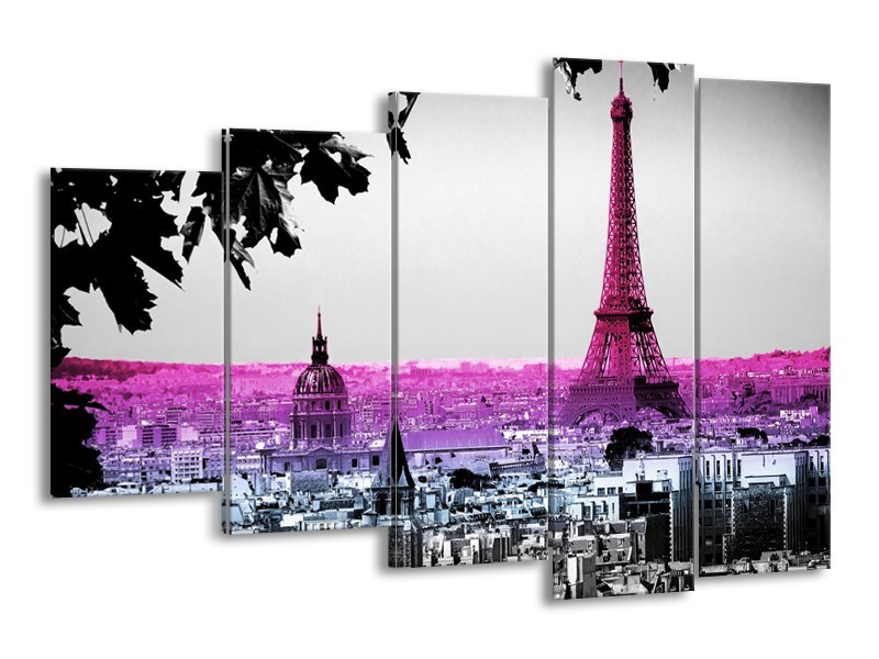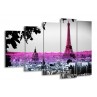 Glasschilderij Parijs, Eiffeltoren | Paars, Roze, Grijs | 150x100cm 5Luik