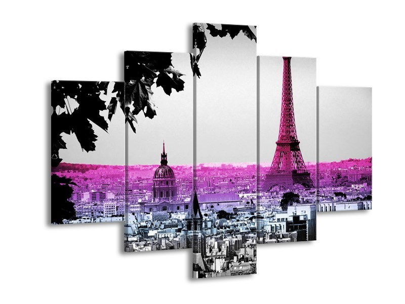 Glasschilderij Parijs, Eiffeltoren | Paars, Roze, Grijs | 150x105cm 5Luik
