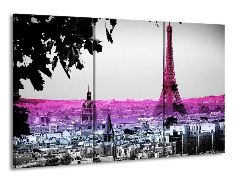 Glasschilderij Parijs, Eiffeltoren | Paars, Roze, Grijs | 165x100cm 3Luik