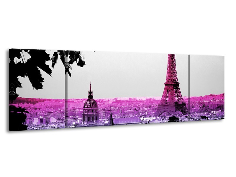 Glasschilderij Parijs, Eiffeltoren | Paars, Roze, Grijs | 170x50cm 3Luik