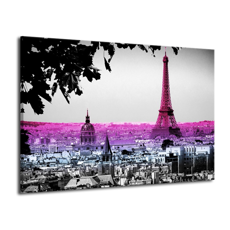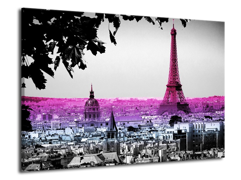 Glasschilderij Parijs, Eiffeltoren | Paars, Roze, Grijs | 70x50cm 1Luik