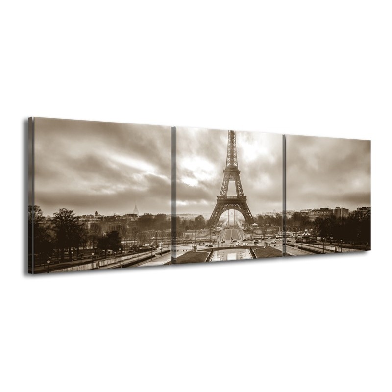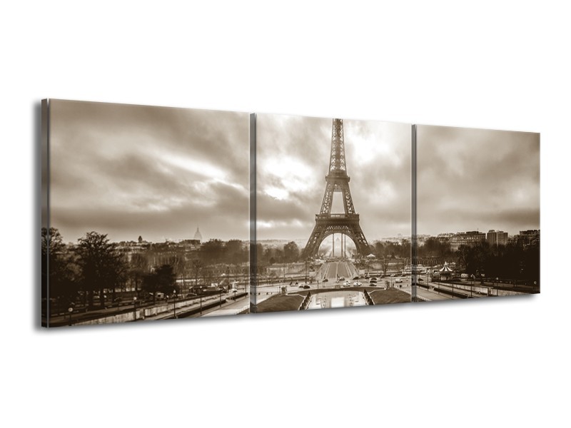 Glasschilderij Parijs, Eiffeltoren | Sepia | 150x50cm 3Luik