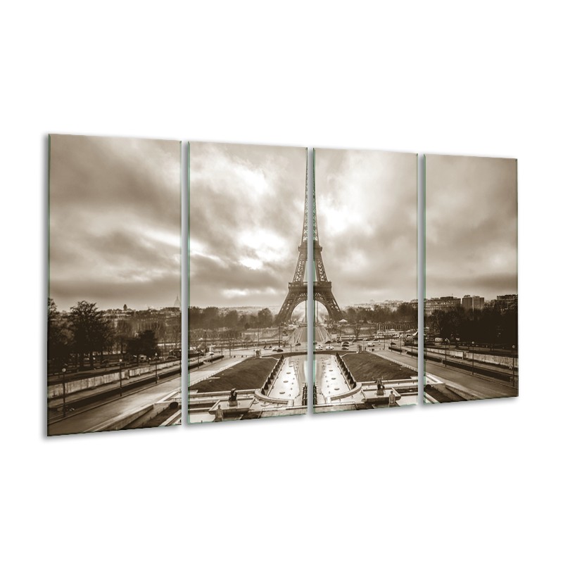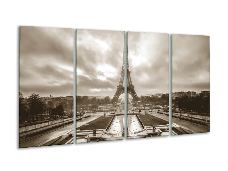 Glasschilderij Parijs, Eiffeltoren | sepia | 160x80cm 4Luik