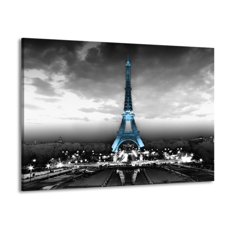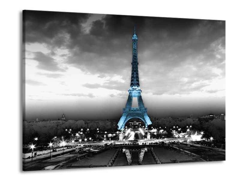 Glasschilderij Parijs, Eiffeltoren | Zwart, Wit, Blauw | 100x70cm 1Luik