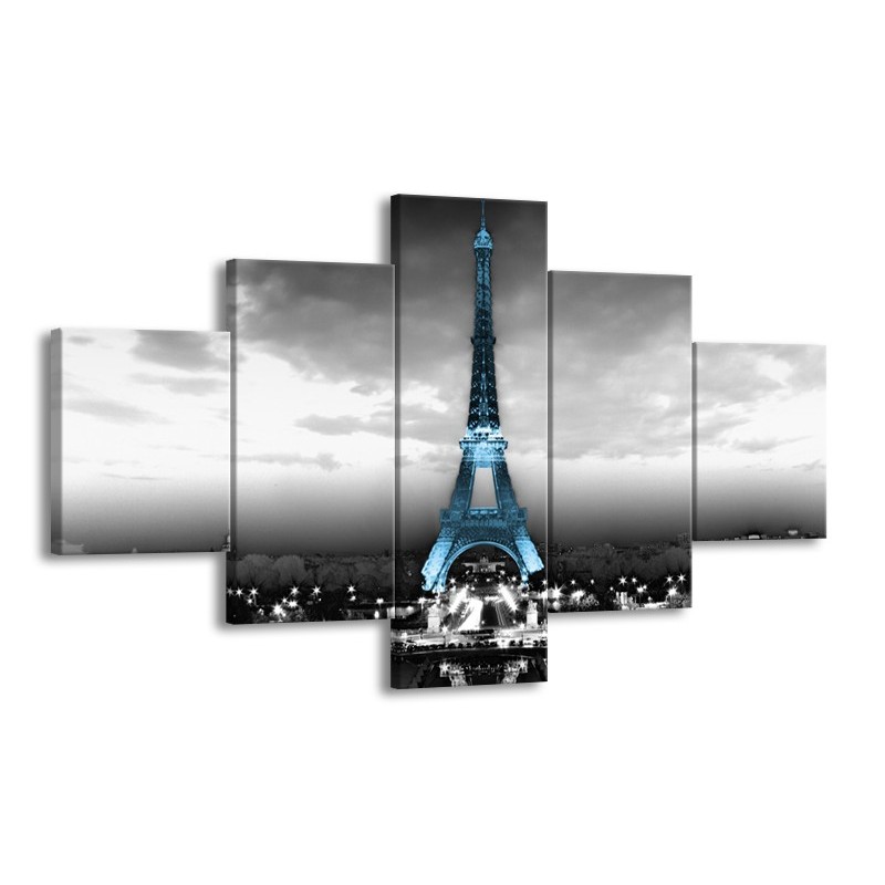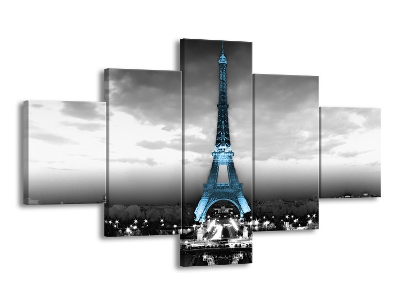 Glasschilderij Parijs, Eiffeltoren | Zwart, Wit, Blauw | 125x70cm 5Luik
