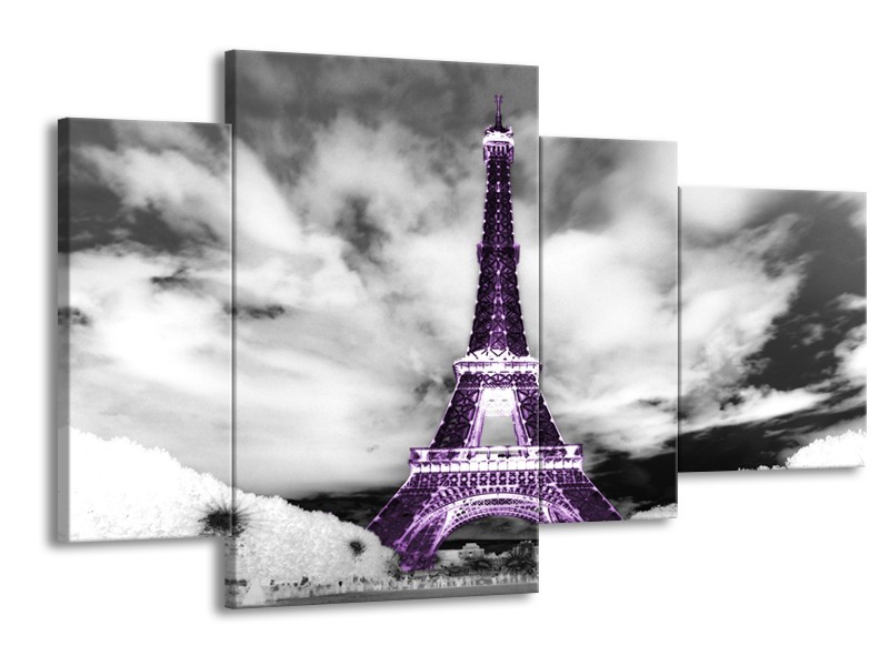 Glasschilderij Parijs, Eiffeltoren | Zwart, Wit, Paars | 120x75cm 4Luik