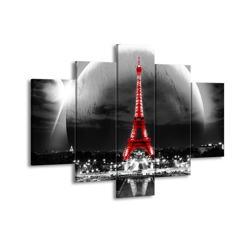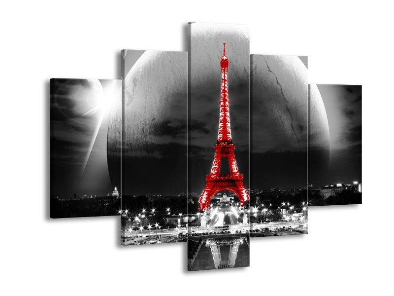 Glasschilderij Parijs, Eiffeltoren | Zwart, Wit, Rood | 150x105cm 5Luik
