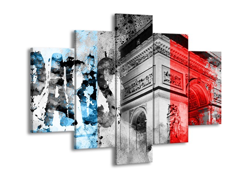 Glasschilderij Parijs, Steden | Blauw, Rood, Grijs | 150x105cm 5Luik
