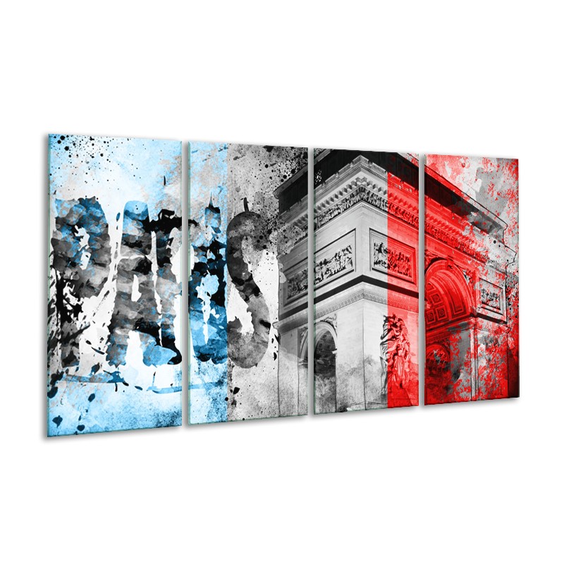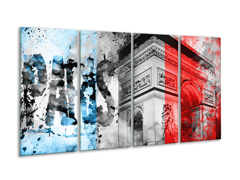 Glasschilderij Parijs, Steden | Blauw, Rood, Grijs | 160x80cm 4Luik