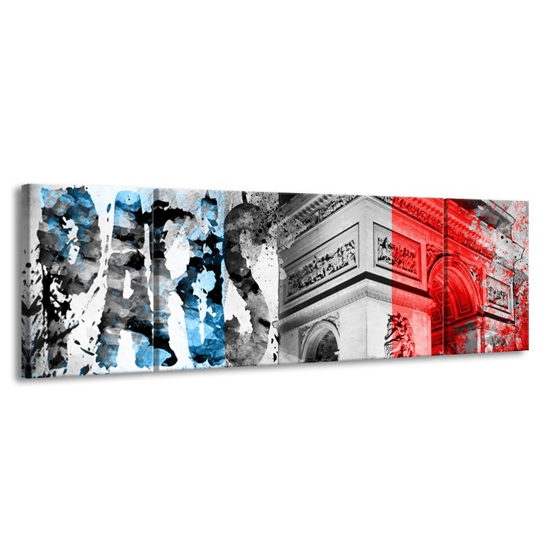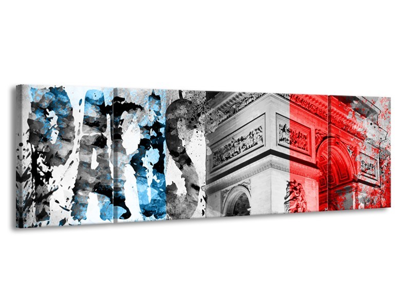 Glasschilderij Parijs, Steden | Blauw, Rood, Grijs | 170x50cm 3Luik
