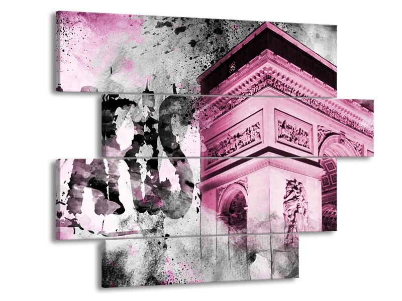 Glasschilderij Parijs, Steden | Paars, Roze, Grijs | 115x85cm 4Luik