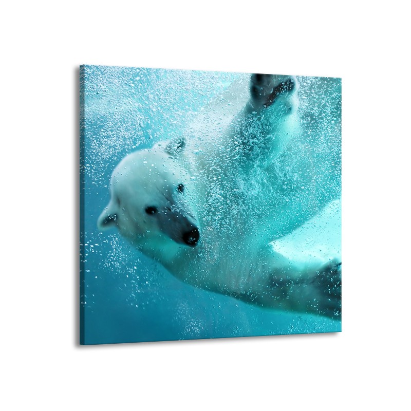 Glasschilderij Poolbeer, Dieren | Blauw, Groen, Grijs | 70x70cm 1Luik