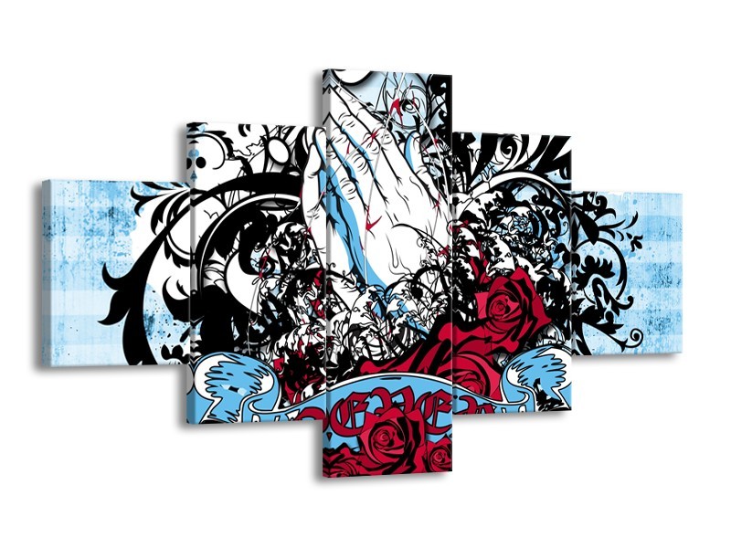 Glasschilderij Popart, Handen | Blauw, Rood, Zwart | 125x70cm 5Luik