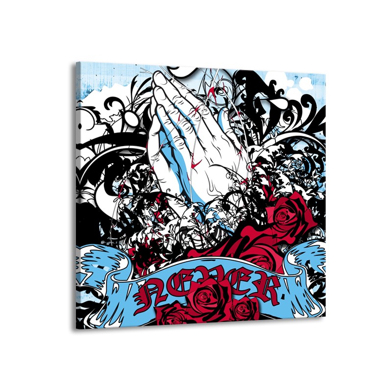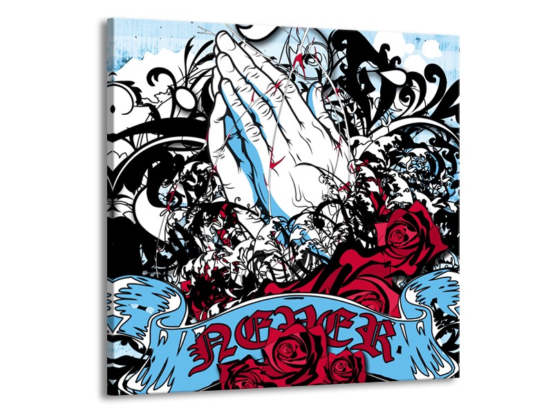 Glasschilderij Popart, Handen | Blauw, Rood, Zwart | 70x70cm 1Luik
