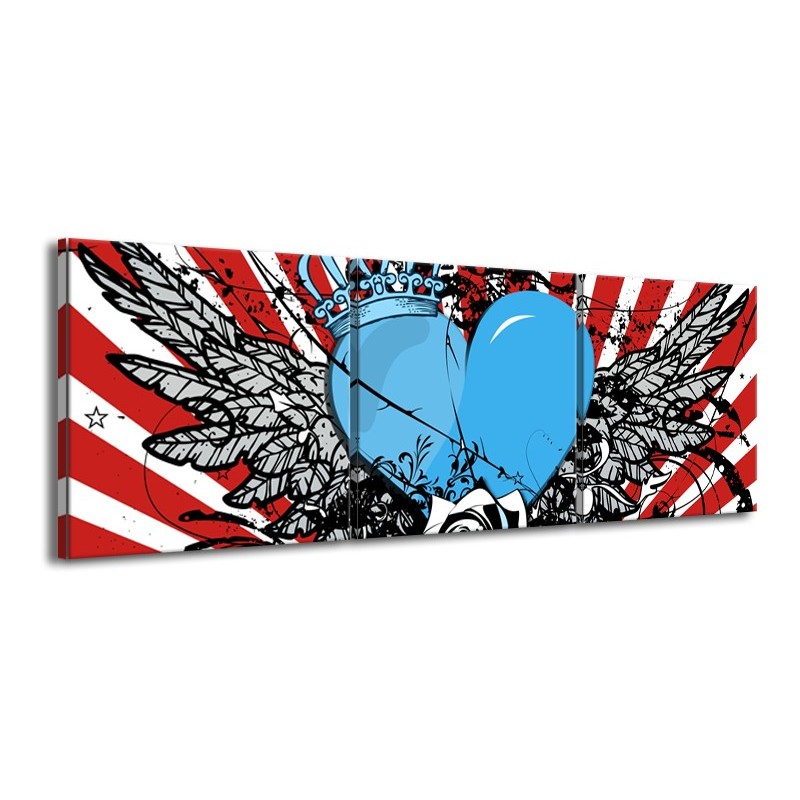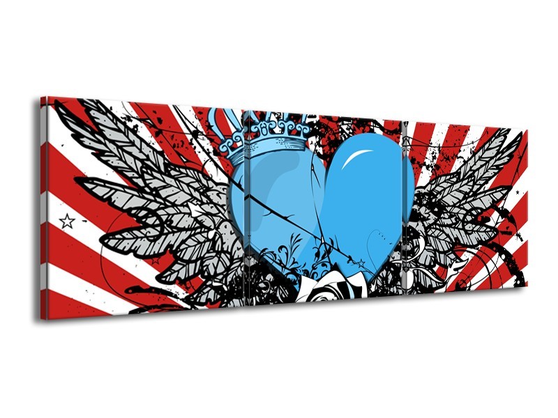 Glasschilderij Popart, Hart | Blauw, Rood, Zwart | 150x50cm 3Luik