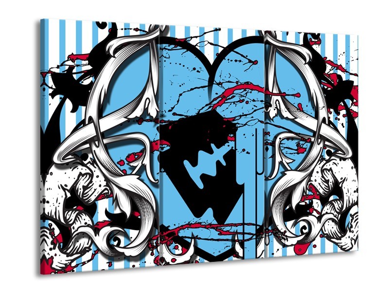 Glasschilderij Popart, Hart | Grijs, Zwart, Blauw | 60x90cm 3Luik