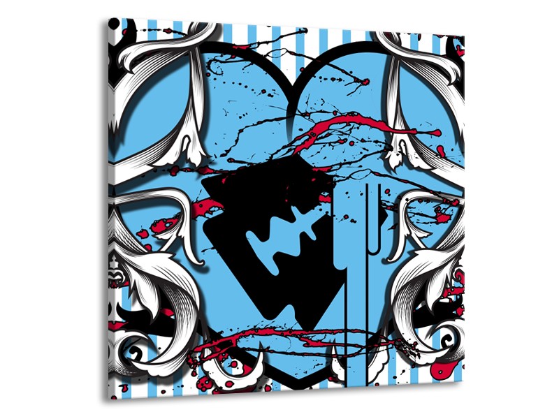 Glasschilderij Popart, Hart | Grijs, Zwart, Blauw | 70x70cm 1Luik