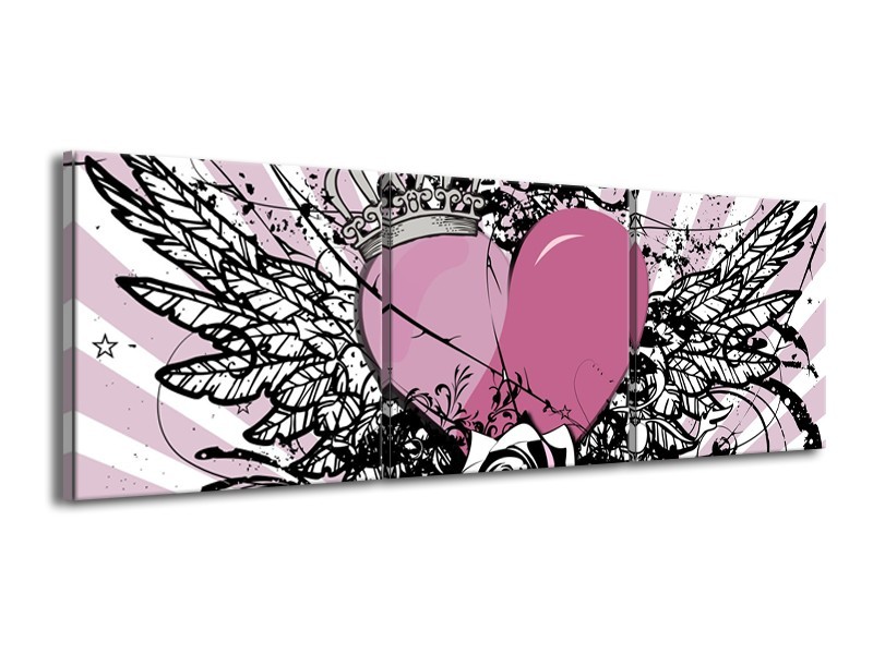 Glasschilderij Popart, Hart | Paars, Roze, Grijs | 150x50cm 3Luik