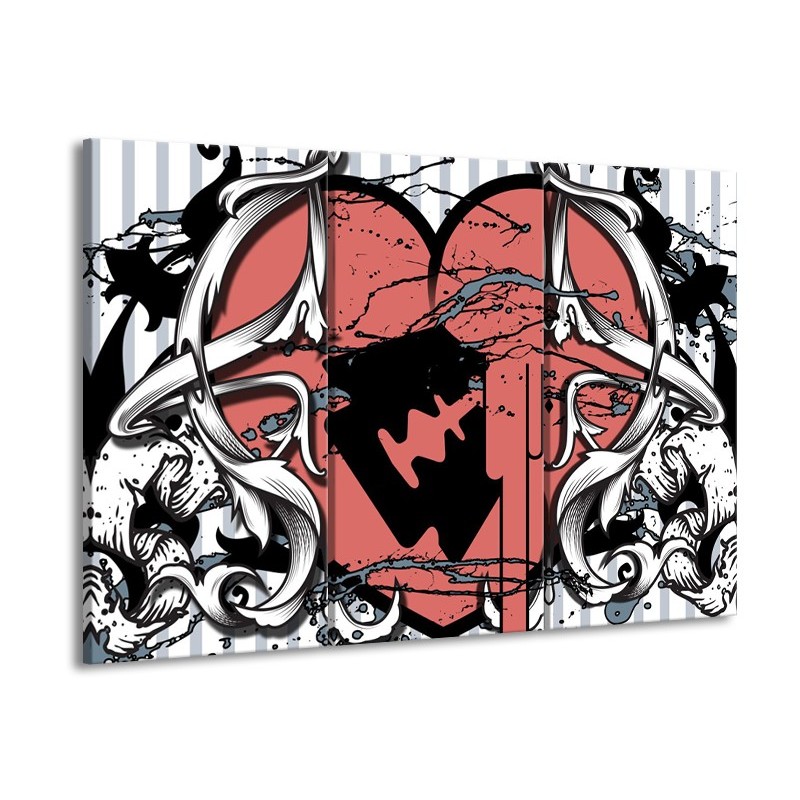 Glasschilderij Popart, Hart | Rood, Grijs, Zwart | 60x90cm 3Luik