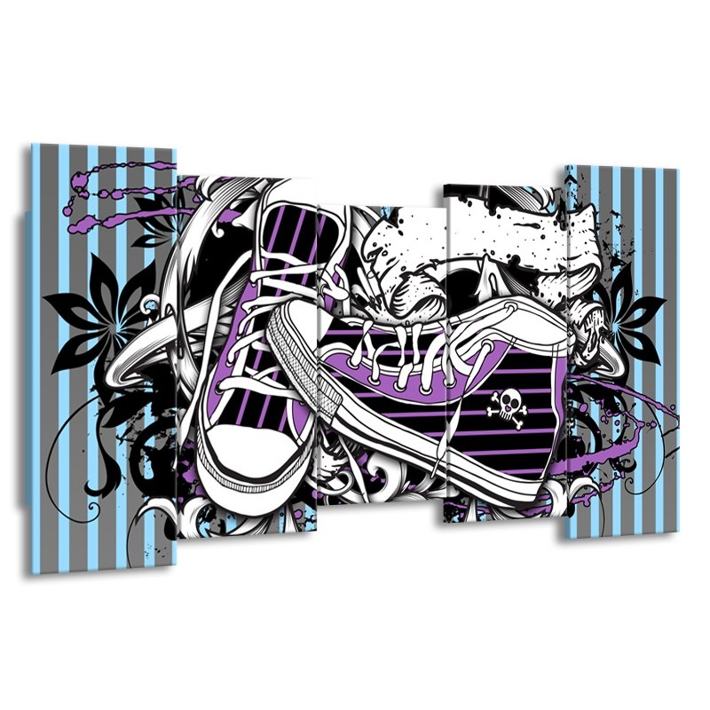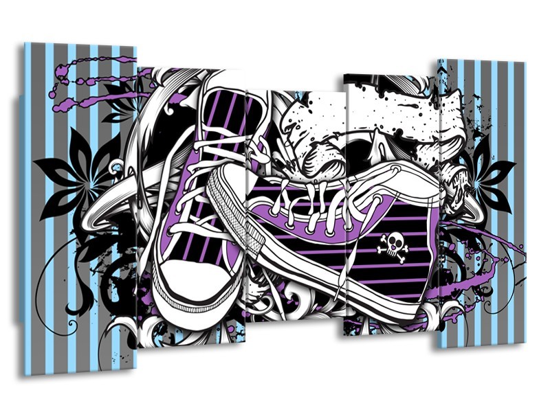 Glasschilderij Popart, Schoenen | Grijs, Paars, Wit | 150x80cm 5Luik