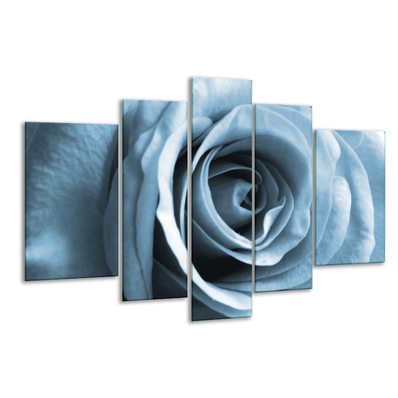 Glasschilderij Roos, Bloem | Blauw, Grijs, Wit | 170x100cm 5Luik