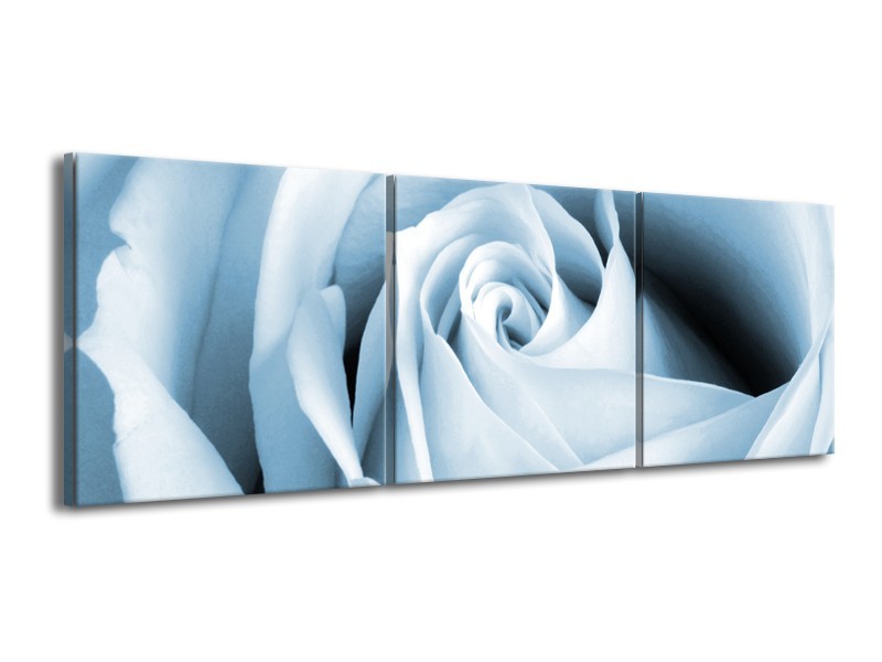 Glasschilderij Roos, Bloem | Blauw, Wit | 150x50cm 3Luik