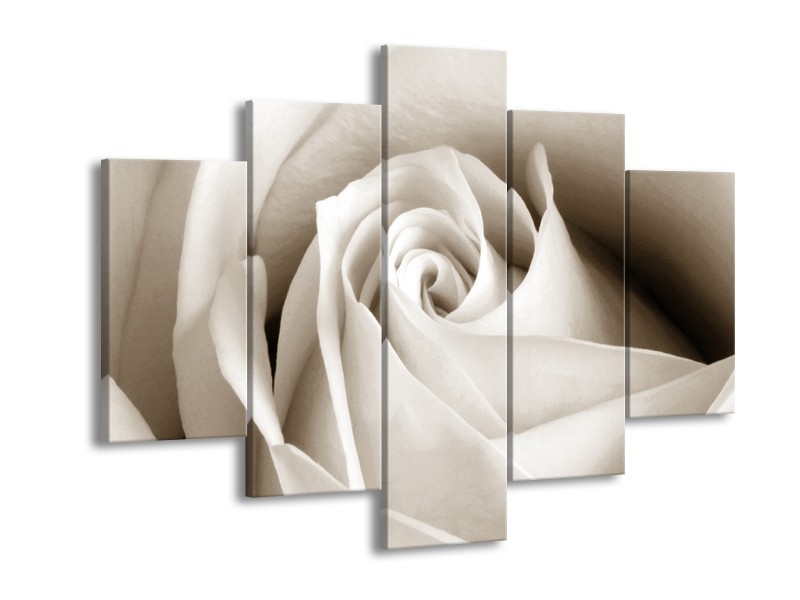 Glasschilderij Roos, Bloem | Crème , Sepia | 150x105cm 5Luik