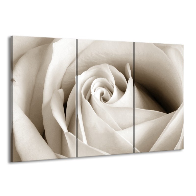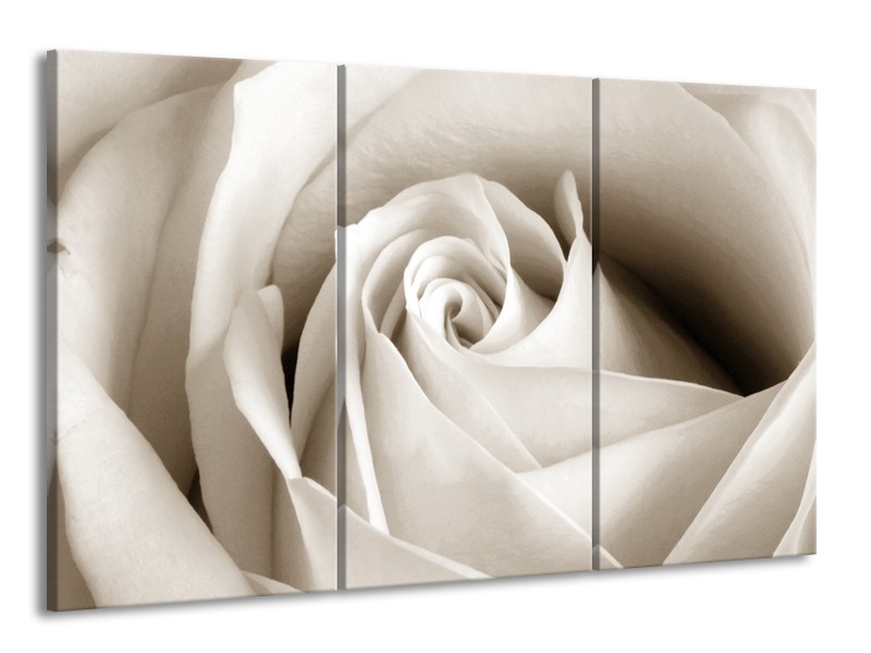 Glasschilderij Roos, Bloem | Crème , Sepia | 165x100cm 3Luik