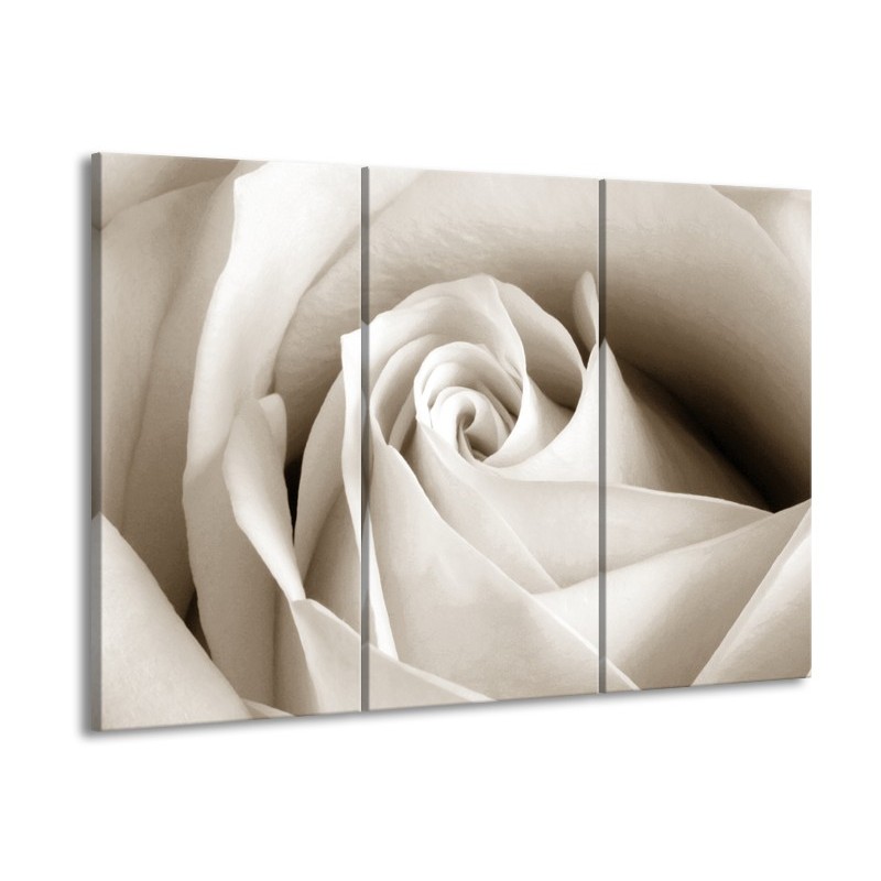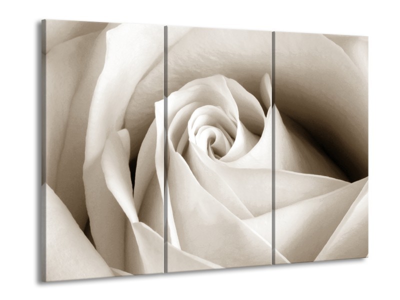 Glasschilderij Roos, Bloem | Crème , Sepia | 60x90cm 3Luik