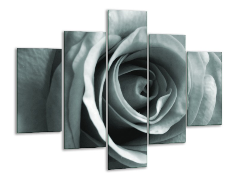 Glasschilderij Roos, Bloem | Grijs, Groen | 100x70cm 5Luik