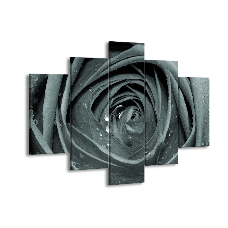 Glasschilderij Roos,Bloem | Grijs, Groen | 150x105cm 5Luik