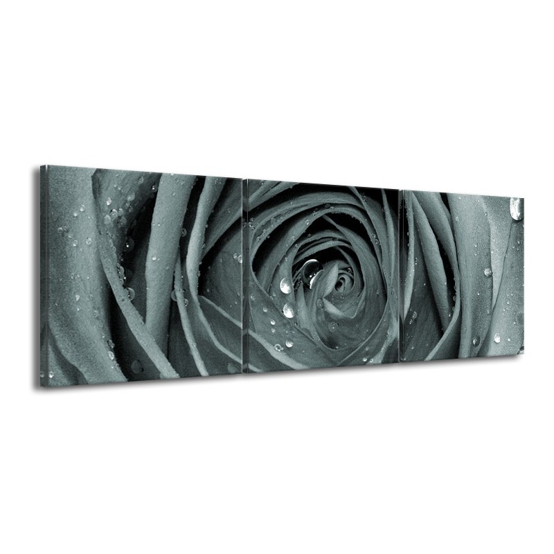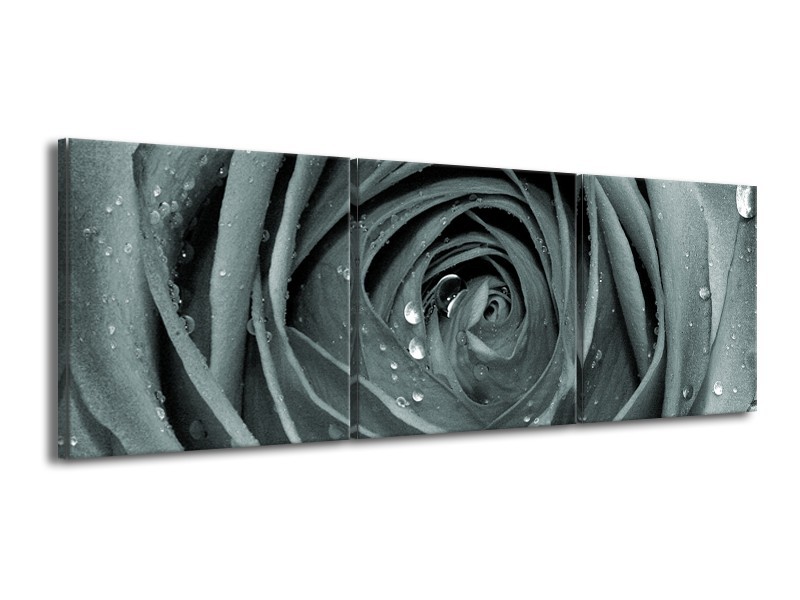 Glasschilderij Roos,Bloem | Grijs, Groen | 150x50cm 3Luik