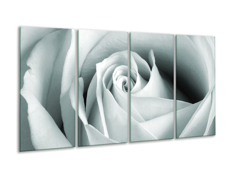 Glasschilderij Roos, Bloem | Grijs, Groen | 160x80cm 4Luik