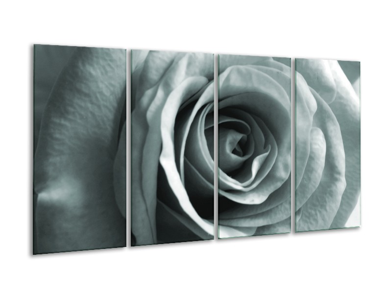 Glasschilderij Roos, Bloem | Grijs, Groen | 160x80cm 4Luik