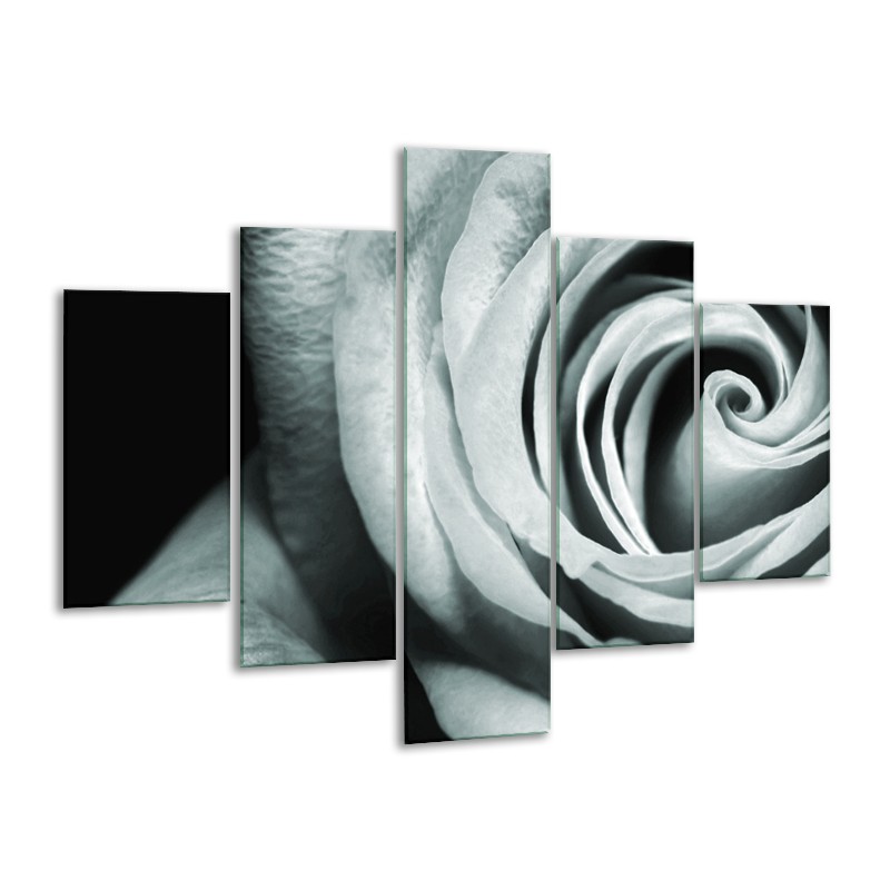Glasschilderij Roos, Bloem | Grijs, Groen, Zwart | 100x70cm 5Luik