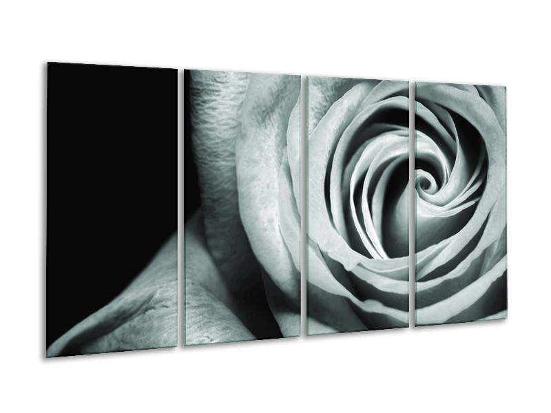 Glasschilderij Roos, Bloem | Grijs, Groen, Zwart | 160x80cm 4Luik