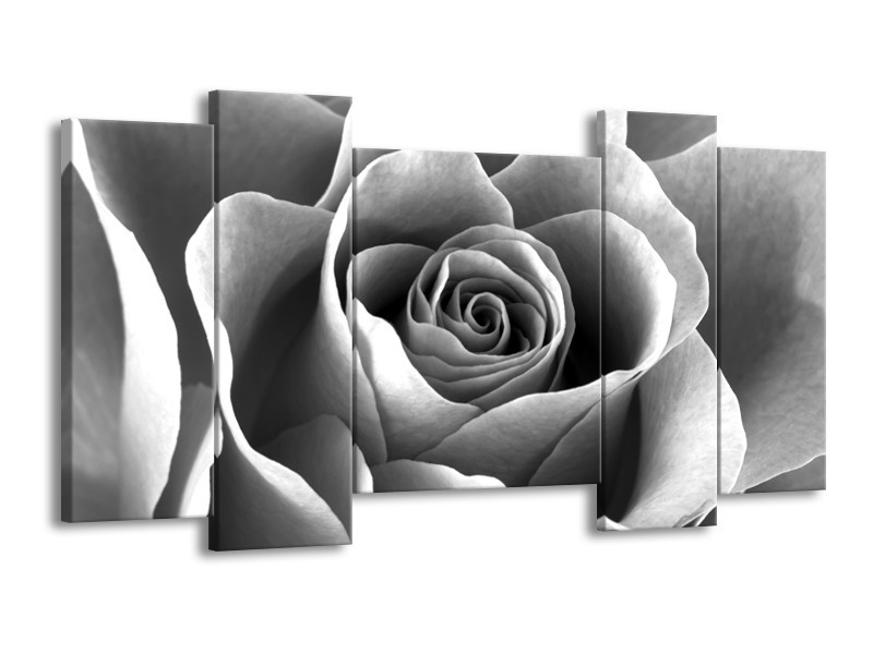 Glasschilderij Roos, Bloem | Grijs, Zwart | 120x65cm 5Luik