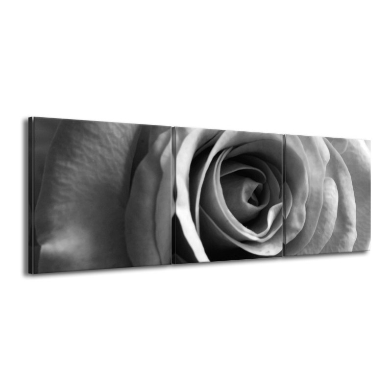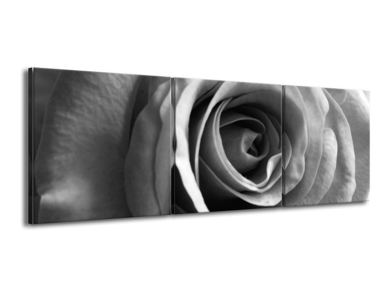 Glasschilderij Roos, Bloem | Grijs, Zwart | 150x50cm 3Luik