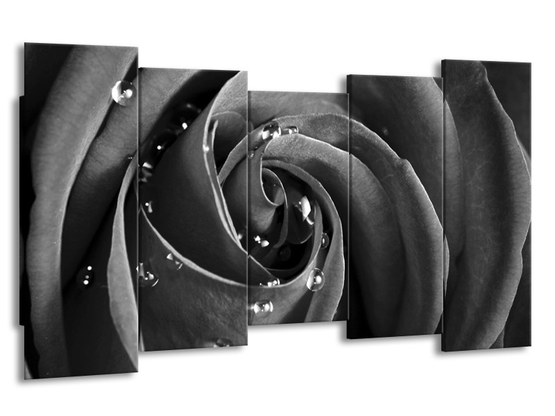 Glasschilderij Roos, Bloem | Grijs, Zwart | 150x80cm 5Luik