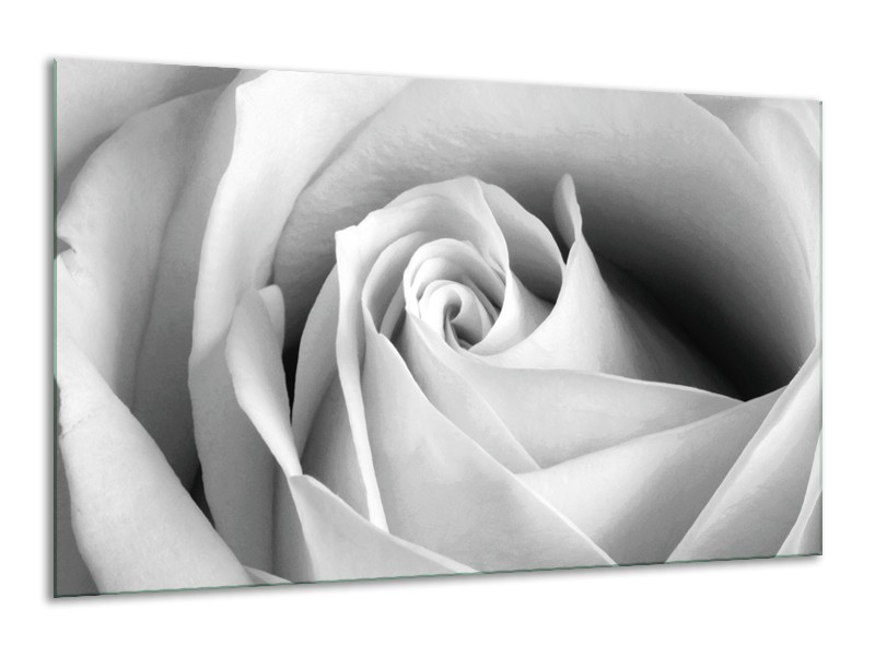 Glasschilderij Roos, Bloem | Grijs, Zwart, Wit | 120x70cm 1Luik