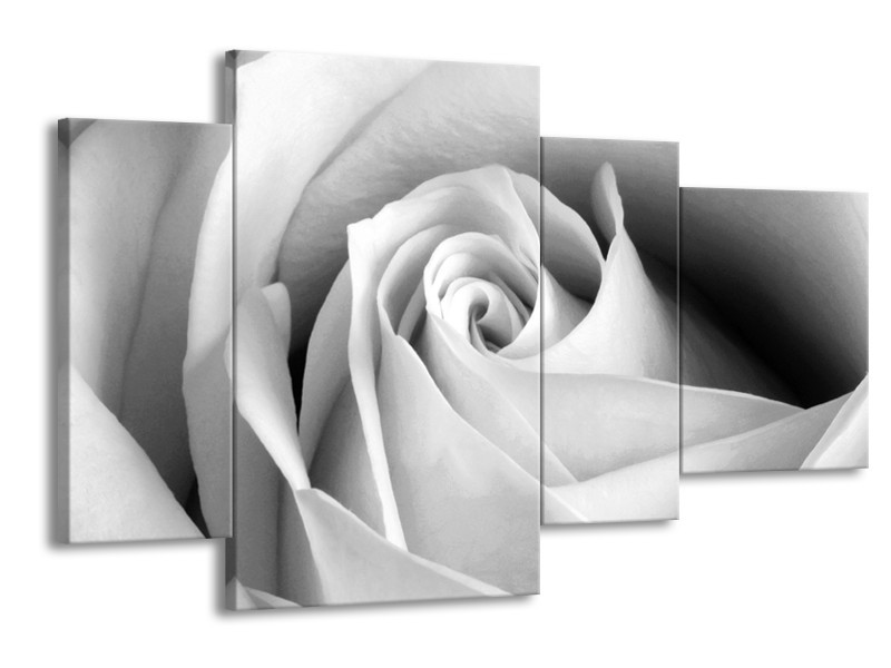 Glasschilderij Roos, Bloem | Grijs, Zwart, Wit | 120x75cm 4Luik