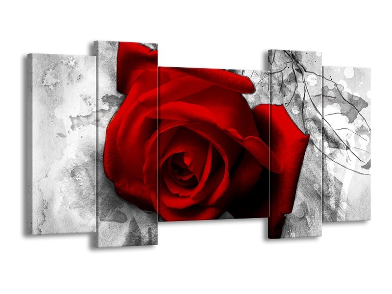 Glasschilderij Roos, Bloem | Rood, Zwart, Wit | 120x65cm 5Luik