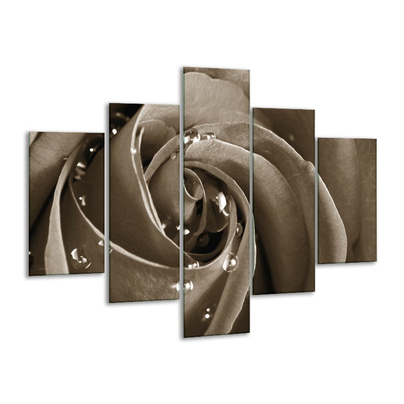 Glasschilderij Roos, Bloem | Sepia | 100x70cm 5Luik