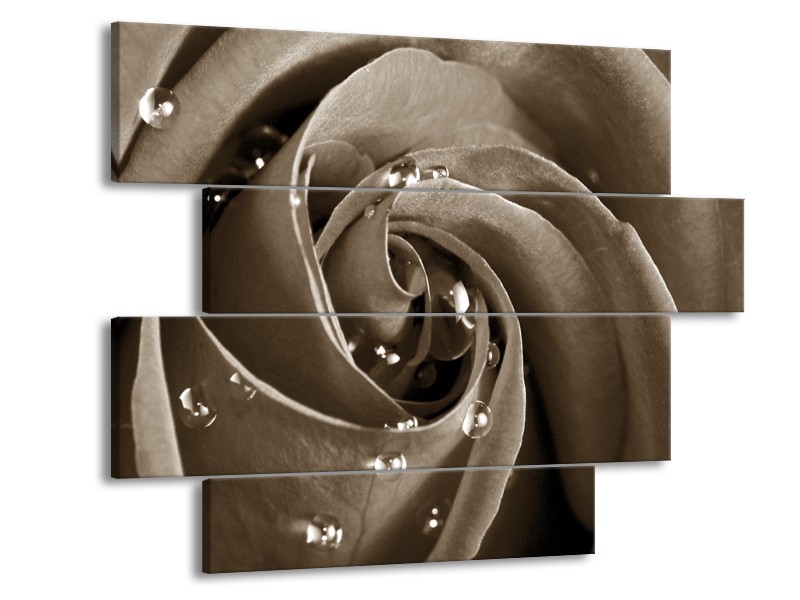 Glasschilderij Roos, Bloem | Sepia | 115x85cm 4Luik