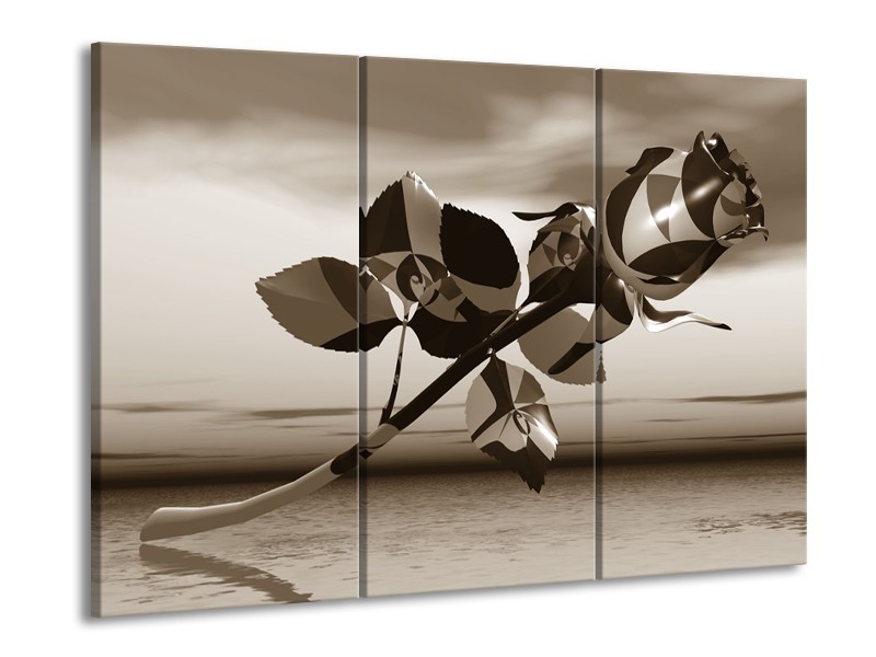 Glasschilderij Roos, Bloem | Sepia | 60x90cm 3Luik