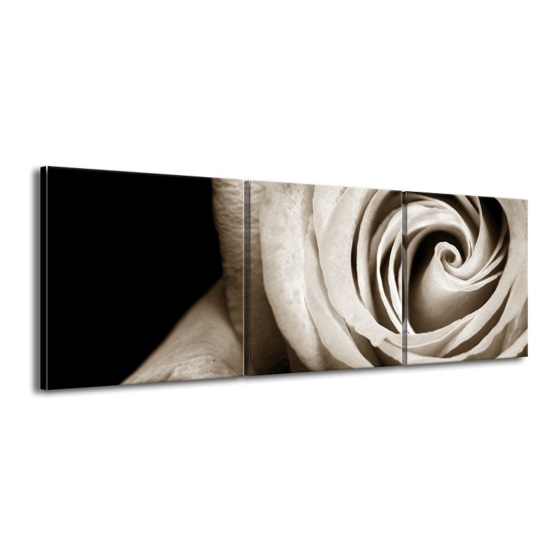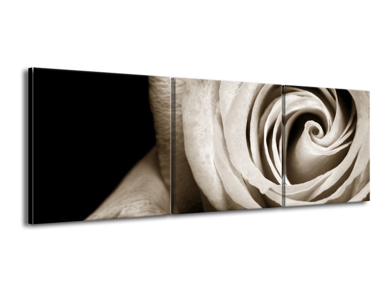 Glasschilderij Roos, Bloem | Sepia, Bruin, Zwart | 150x50cm 3Luik