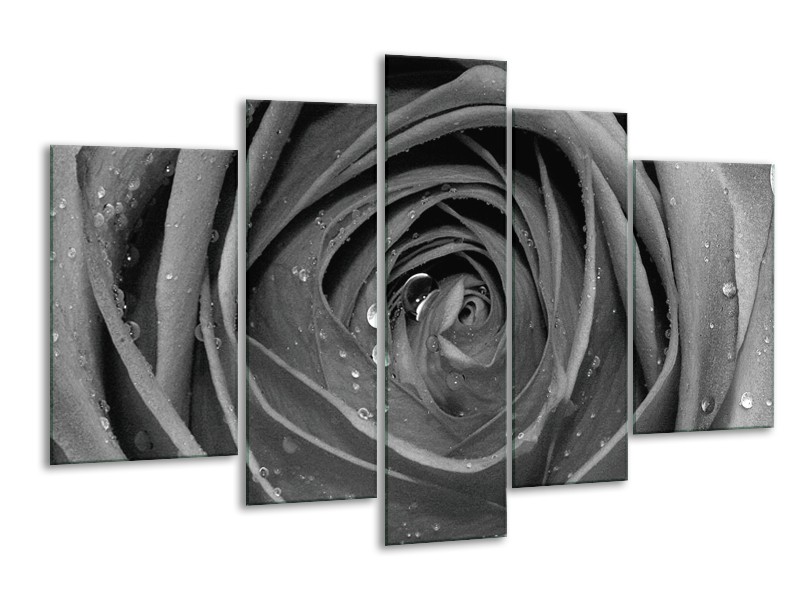 Glasschilderij Roos, Bloem | Zwart, Grijs | 170x100cm 5Luik
