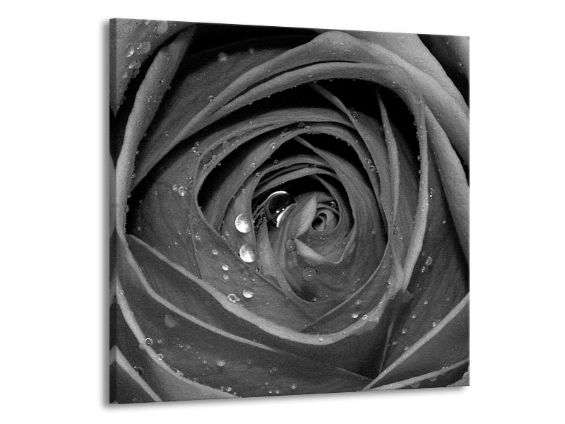 Glasschilderij Roos, Bloem | Zwart, Grijs | 70x70cm 1Luik