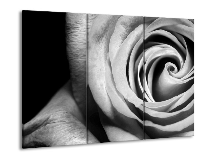 Glasschilderij Roos, Bloem | Zwart, Wit, Grijs | 60x90cm 3Luik
